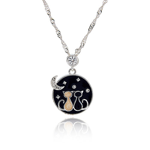Stargazing cats silver plated necklace